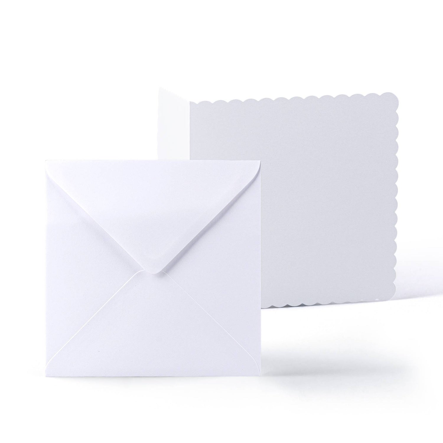 Elegant set med vita kort med vågig kant (300 g/m²) och matchande kuvert (100 g/m²).